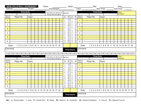 Volleyball Score Sheet Volleyball Games